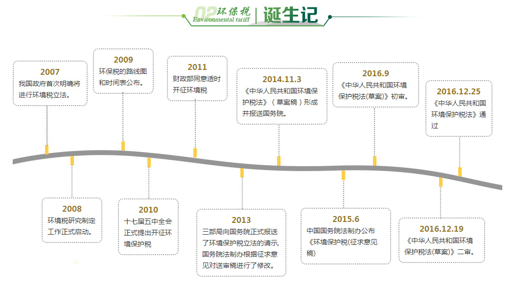 為保護和改善環境,減少污染物排放,推進生態文明建設,由財政部、稅務總局、環境保護部三部門共同起草,第十二屆全國人民代表大會常務委員會第二十五次會議通過,《中華人民共和國環境保護稅法》自2018年1月1日起施行。