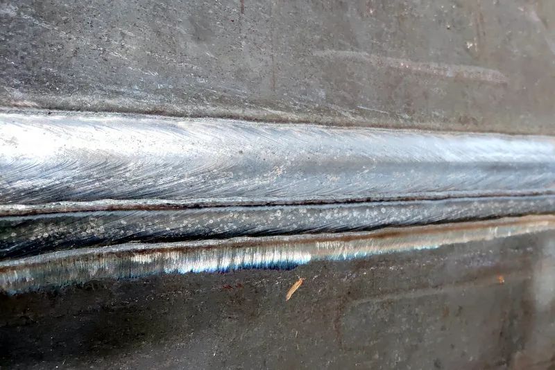 試驗初期,在DN800鍋筒環縫上焊接時發生的熔敷金屬濺出。