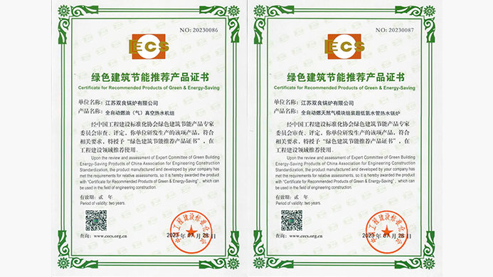 近日,經(jīng)中國(guó)工程建設(shè)標(biāo)準(zhǔn)化協(xié)會(huì)綠色建筑節(jié)能產(chǎn)品專(zhuān)家委員會(huì)審查、評(píng)定,江蘇雙良鍋爐有限公司(簡(jiǎn)稱(chēng)“雙良鍋爐”)研發(fā)生產(chǎn)的全自動(dòng)燃油(氣)真空熱水機(jī)組、全自動(dòng)燃天然氣模塊組裝超低氮水管熱水鍋爐,符合相關(guān)要求,再度被授予“綠色建筑節(jié)能推薦產(chǎn)品證書(shū)”,在工程建設(shè)領(lǐng)域推薦使用。