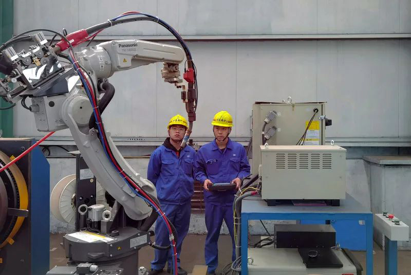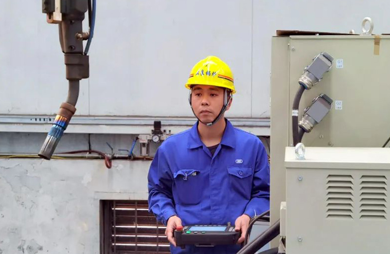 類似設備技術改造,吳昊參與完成的項目數不勝數,比如雙絲埋弧焊焊接電器改造、所有埋弧焊機無線遙控改造、組隊滾輪架拼裝焊接改造、水管鍋筒焊接機器打磨、模式壁自動焊的電焊機改造等項目。就在剛剛他又和機修師傅們一起完成一項火管車間管頭打磨機自動化的改造,原來四五個人花費幾天才能完成的人工打磨,現在只要一人調運上管,按下啟動全部自動打磨好,省時省力節約成本。